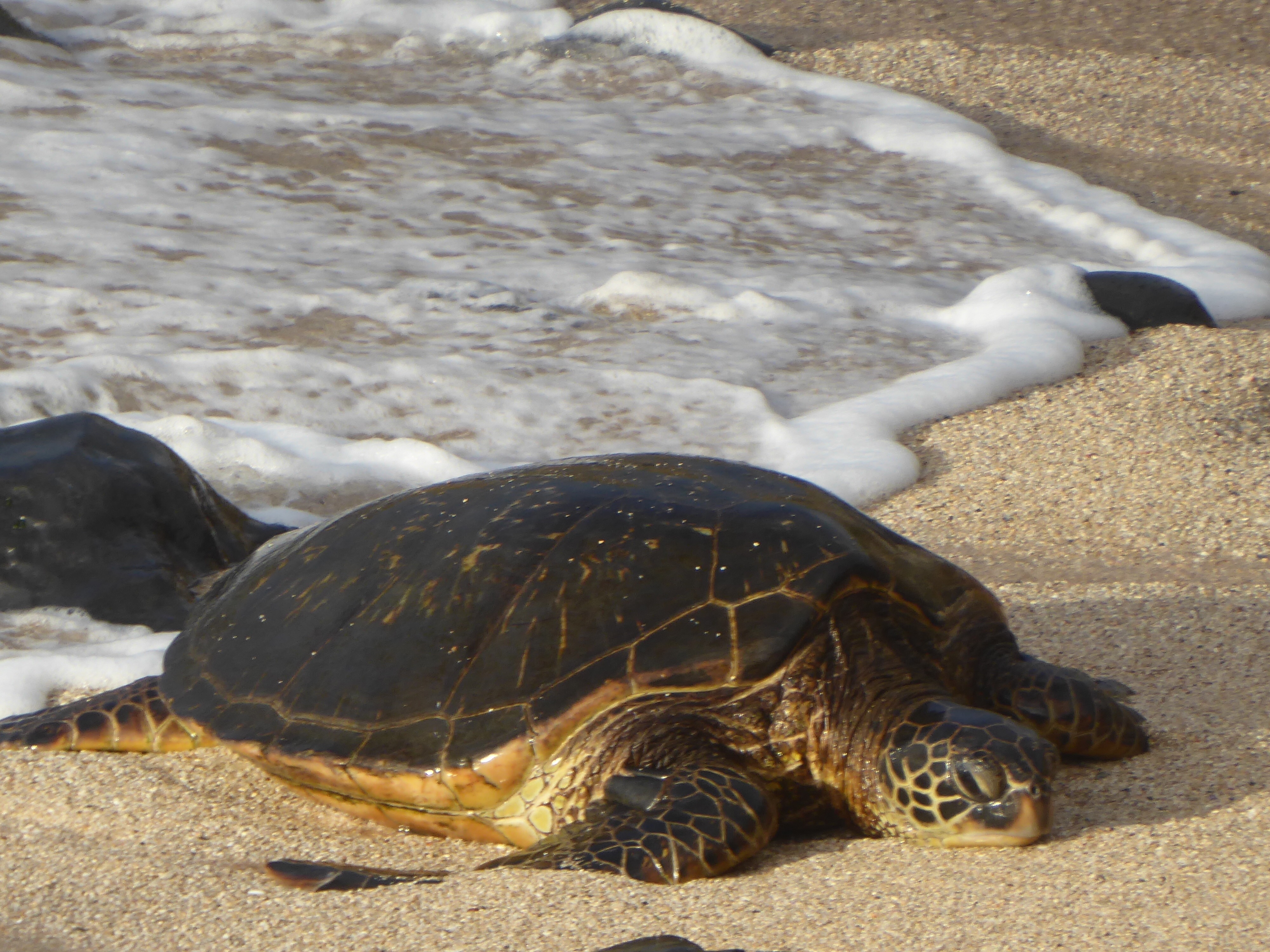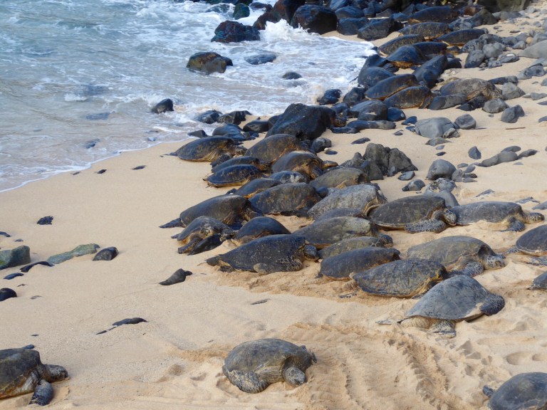 Da sind die Einen: dünn, sportlich, cool, agil, schnell über die Wellen flitzend und durch die Wellen tauchend. So sehe ich die Surfer jeden Abend. Und dann sind da die Anderen – an demselben Strand. Das Gegenstück dazu. Kugelig, schwerfällig, langsam, watschelnd, scheinbar schon erschöpft vom alleinigen Anschwemmen-lassen durch die Wellen. Eine ganze Kolonie Schildkröten sonnt sich am Strand.