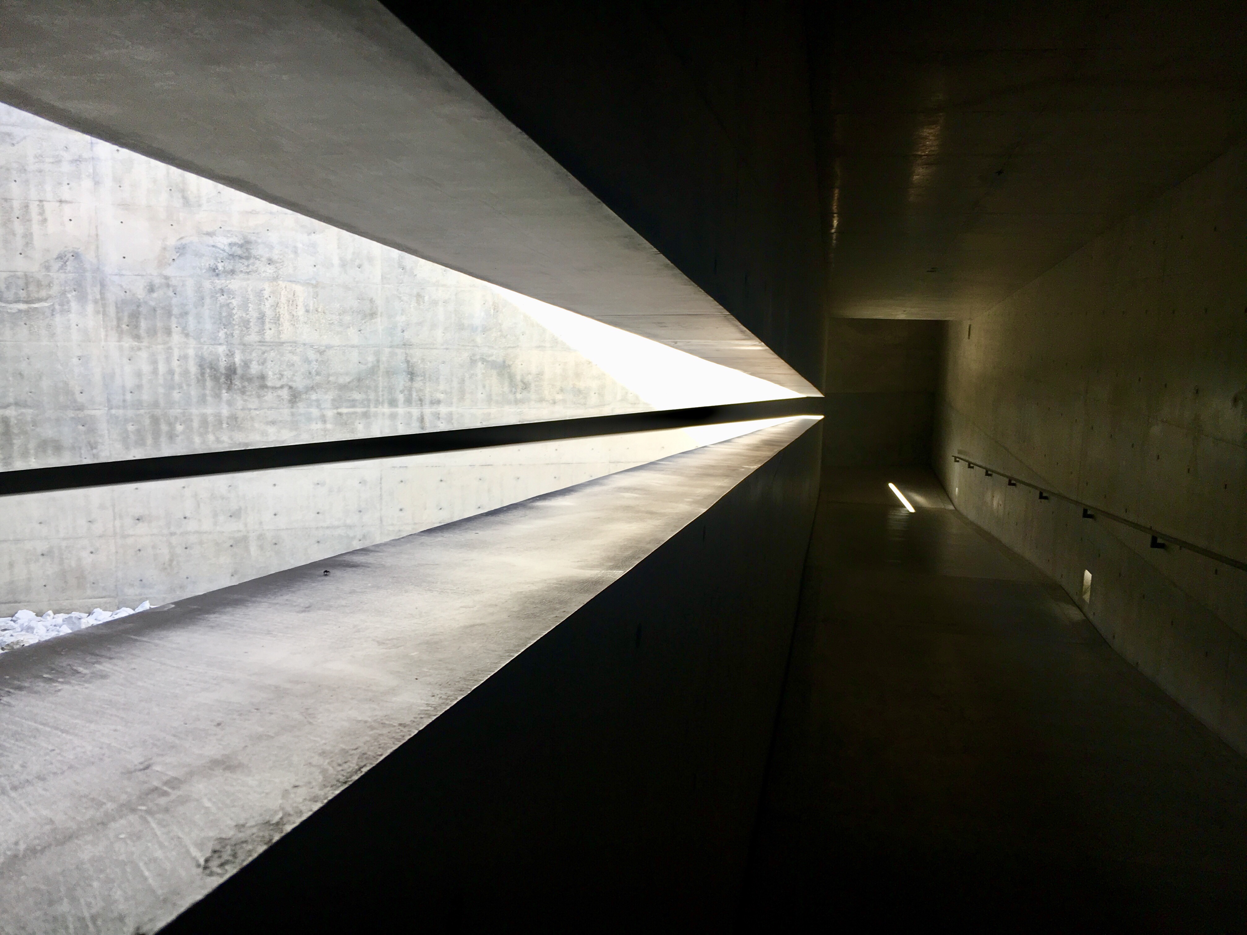 Raue Betonwände. Gerade. In leichten Winkeln. Rein. Roh. Pur. Und immer immer wieder sich wiederholend: die zwei Löcher im Beton. Tadao Ando.